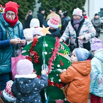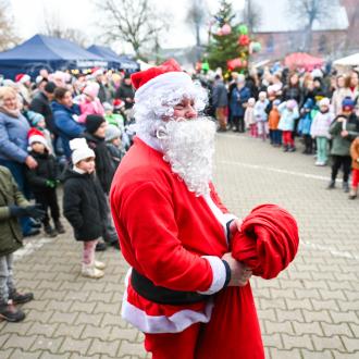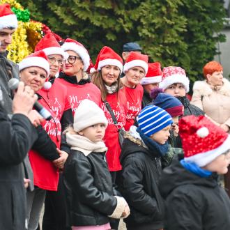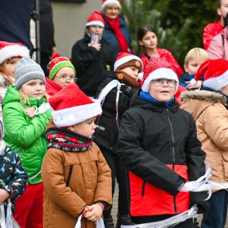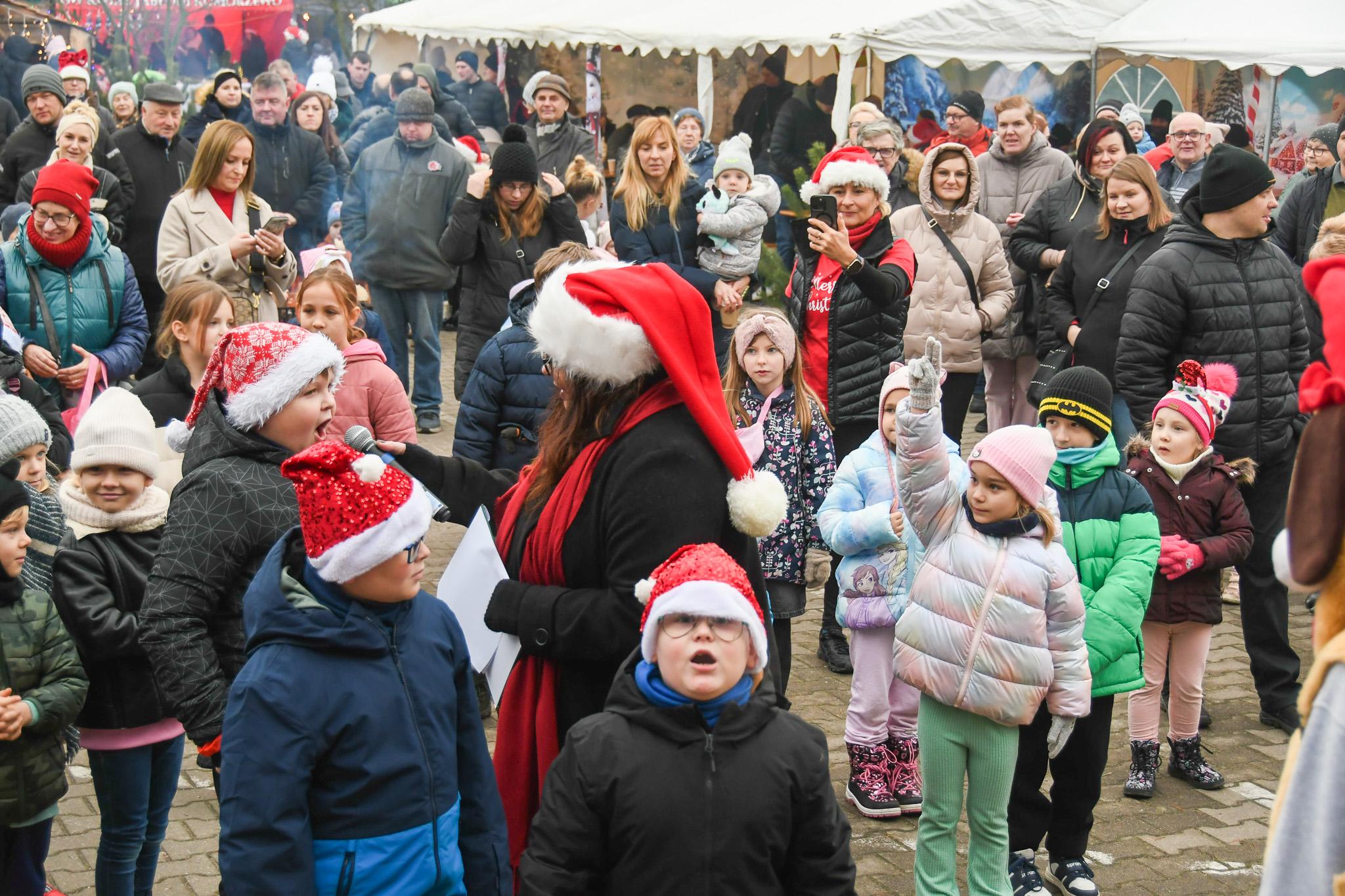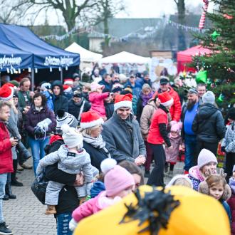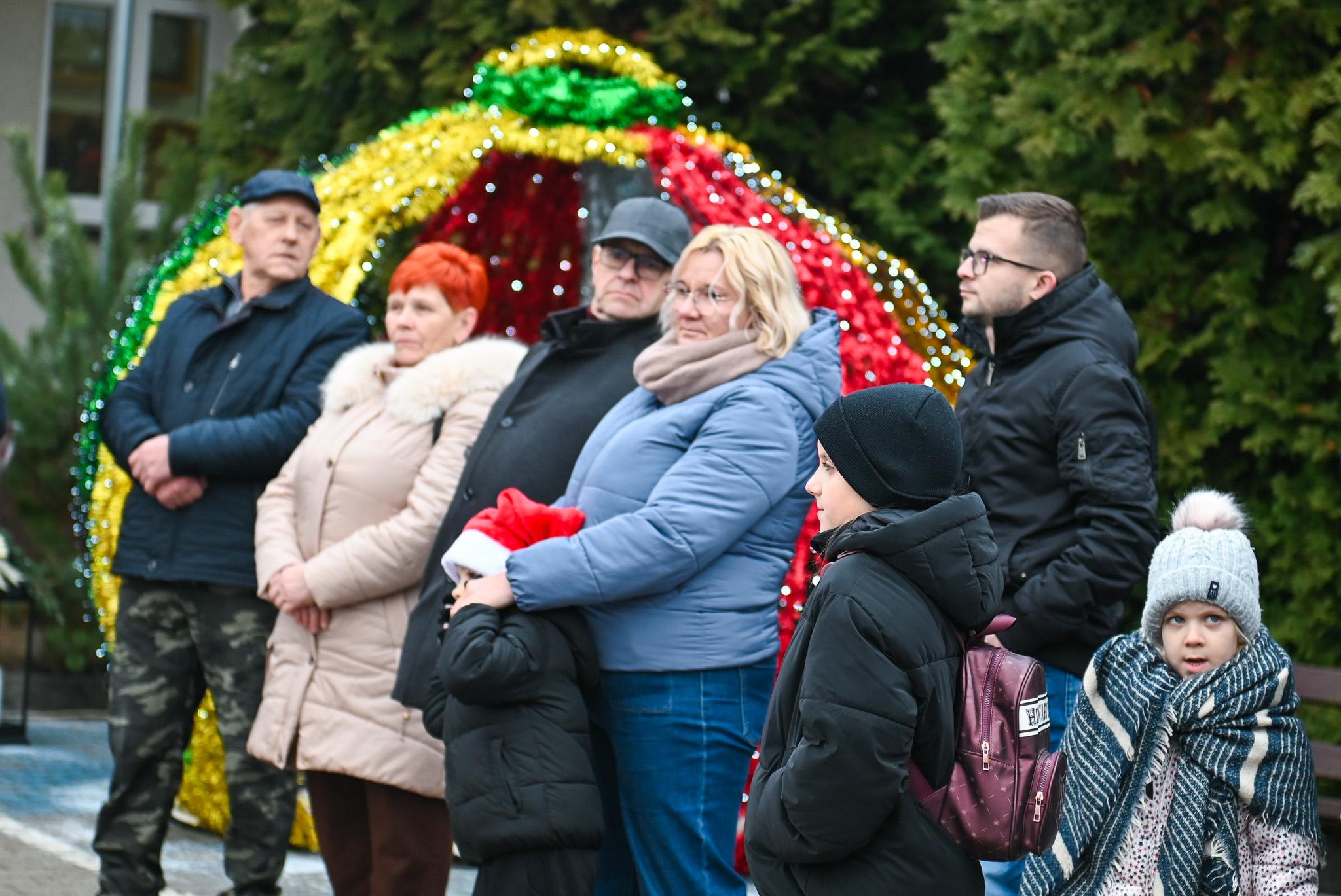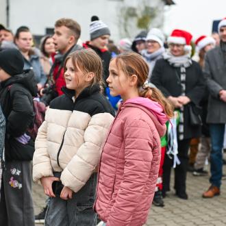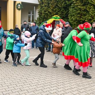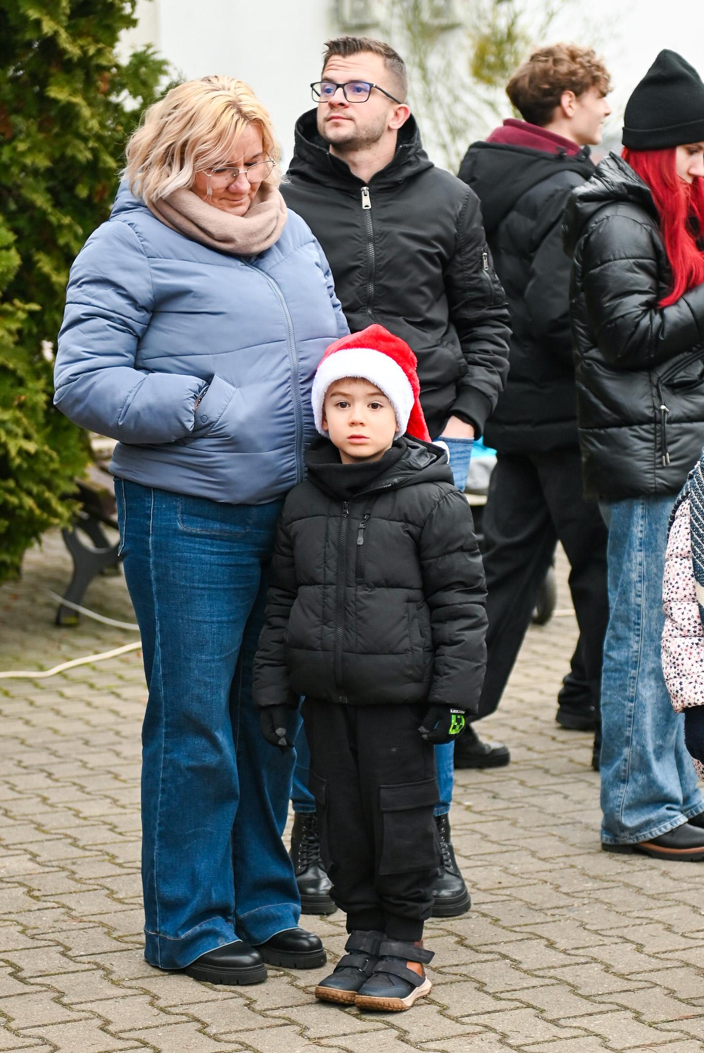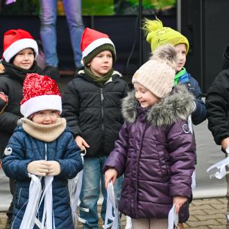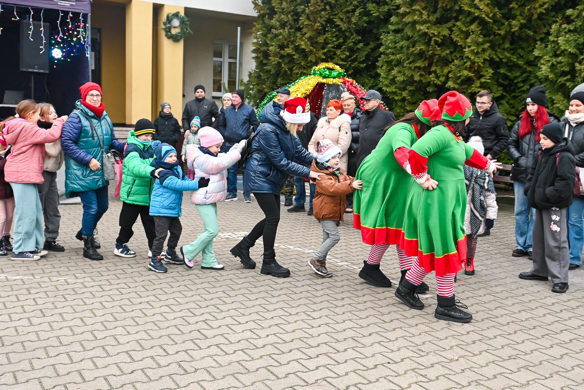 Gdy dzieci zaczęły wspólnymi okrzykami wzywać Świętego Mikołaja, w powietrzu poczuć można było prawdziwy dreszczyk emocji. I nagle pojawił się on, nie w klasycznych saniach, lecz w ich „prawie-saniowej” wersji, przystrojonej świątecznie. Mikołaj zatrzymał się, uśmiechnął, pomachał, po czym dołączył do zabawy, wywołując jeszcze większy entuzjazm. Przyniósł ze sobą wyjątkowy prezent. Na sali wiejskiej dzieci mogły odkrywać kinową strefę sferyczną, szaleć na zamkach dmuchanych oraz robić pamiątkowe zdjęcia w klimacie „Krainy Lodu”, gdzie Elsa i Anna wprowadzały wszystkich w bajkowy, zimowy świat. Radość i zachwyt malowały się na twarzach najmłodszych, którzy z wypiekami oczekiwali kolejnych atrakcji. Zanim Mikołaj przyjechał, dzieci musiały odpowiedzieć na jego pytania, co tylko podgrzało atmosferę. Na początku natomiast taniec w rytmie opowieści o Grinchach rozgrzał wszystkich uczestników, wprowadzając dzieci w pełen śmiechu i zabawy świąteczny nastrój. A potem wspólnie zatańczyli z Mikołajem, śmiejąc się i ciesząc każdą chwilą spotkania ze świętym gościem. Ci, którzy postanowili pozostać na placu po głównych atrakcjach, wzięli udział w kreatywnej zabawie ,,Wspólnie ozdabiali choinki". Publiczność decydowała, która choinka zasługuje na tytuł najpiękniejszej. Po radosnym głosowaniu okazało się, że… nikt nie wygrał, bo wszystkie choinki były równie piękne!