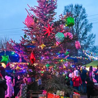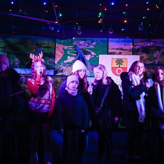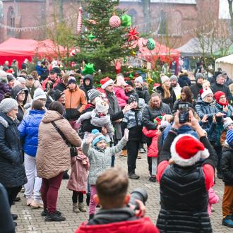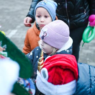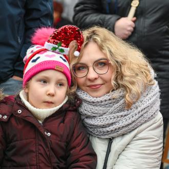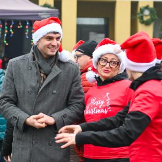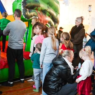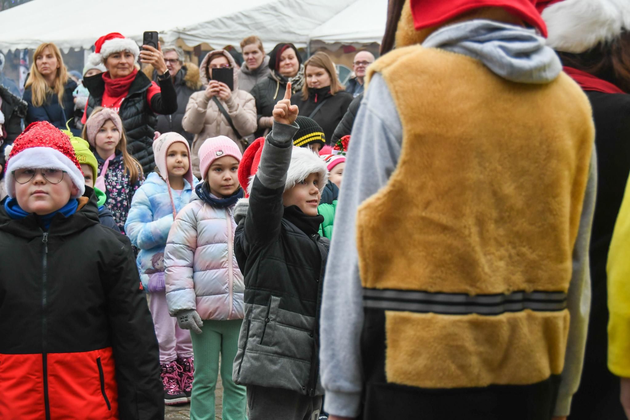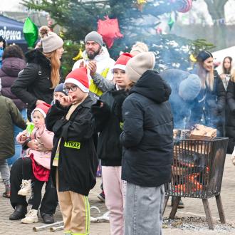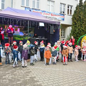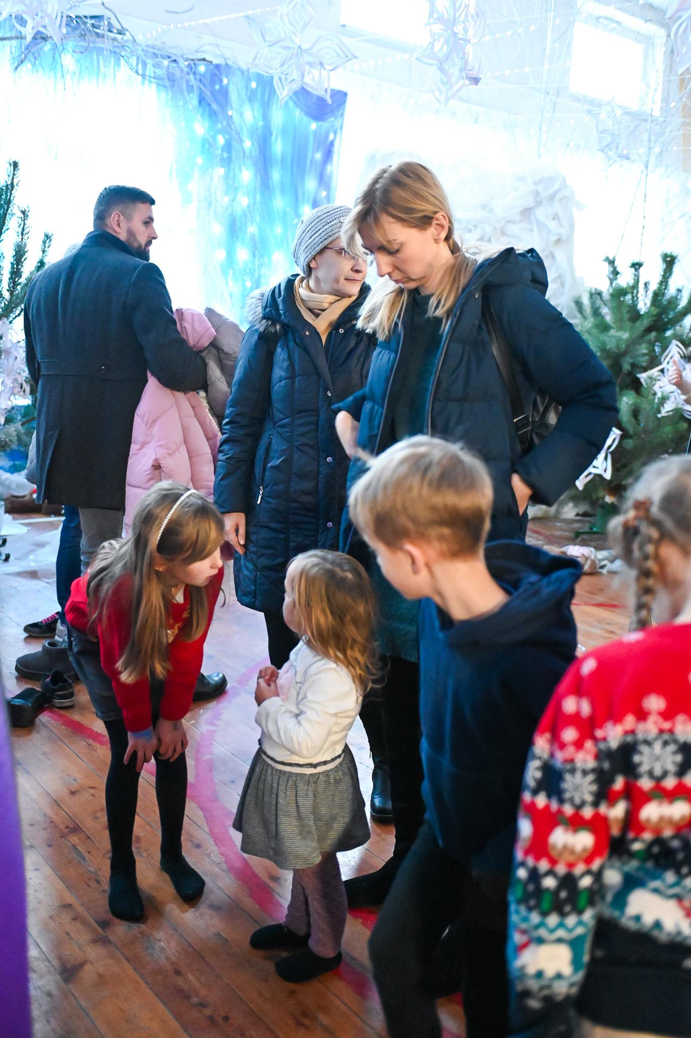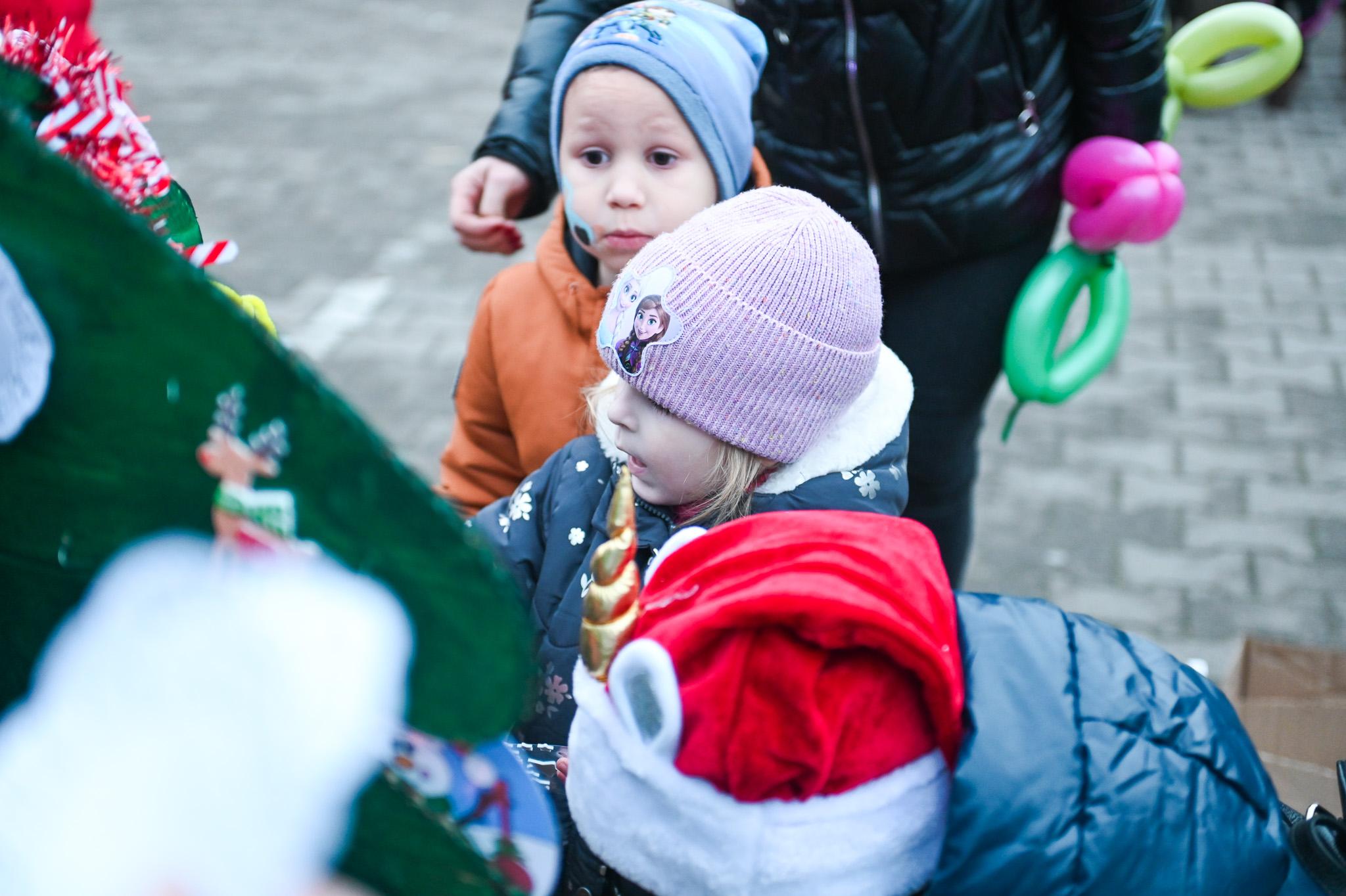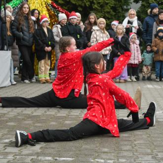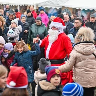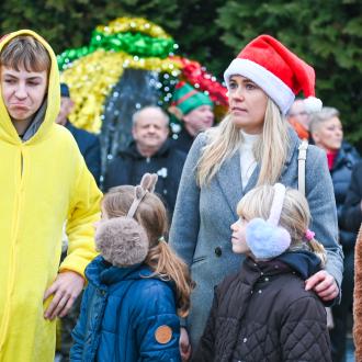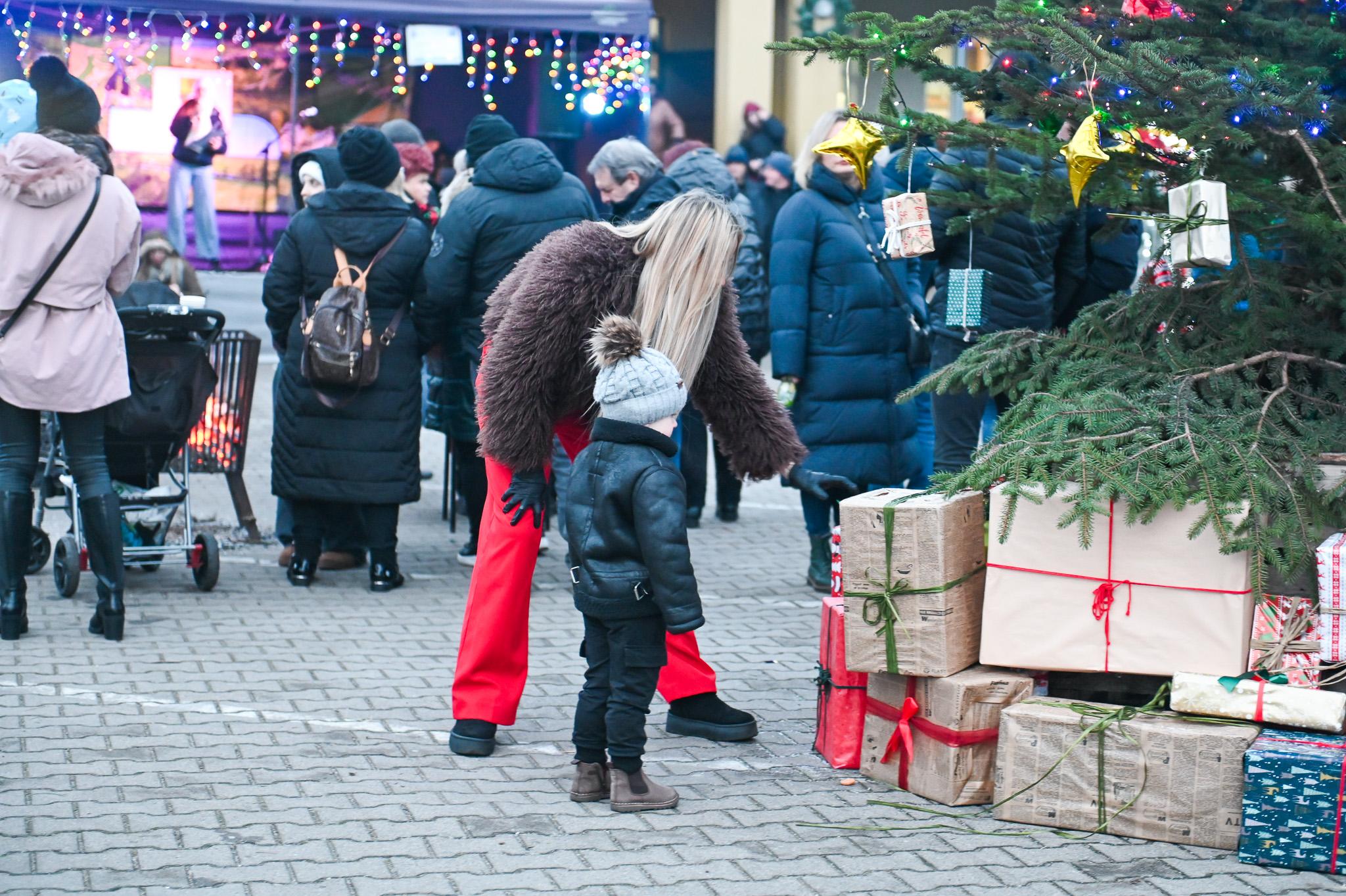 Gdy dzieci zaczęły wspólnymi okrzykami wzywać Świętego Mikołaja, w powietrzu poczuć można było prawdziwy dreszczyk emocji. I nagle pojawił się on, nie w klasycznych saniach, lecz w ich „prawie-saniowej” wersji, przystrojonej świątecznie. Mikołaj zatrzymał się, uśmiechnął, pomachał, po czym dołączył do zabawy, wywołując jeszcze większy entuzjazm. Przyniósł ze sobą wyjątkowy prezent. Na sali wiejskiej dzieci mogły odkrywać kinową strefę sferyczną, szaleć na zamkach dmuchanych oraz robić pamiątkowe zdjęcia w klimacie „Krainy Lodu”, gdzie Elsa i Anna wprowadzały wszystkich w bajkowy, zimowy świat. Radość i zachwyt malowały się na twarzach najmłodszych, którzy z wypiekami oczekiwali kolejnych atrakcji. Zanim Mikołaj przyjechał, dzieci musiały odpowiedzieć na jego pytania, co tylko podgrzało atmosferę. Na początku natomiast taniec w rytmie opowieści o Grinchach rozgrzał wszystkich uczestników, wprowadzając dzieci w pełen śmiechu i zabawy świąteczny nastrój. A potem wspólnie zatańczyli z Mikołajem, śmiejąc się i ciesząc każdą chwilą spotkania ze świętym gościem. Ci, którzy postanowili pozostać na placu po głównych atrakcjach, wzięli udział w kreatywnej zabawie ,,Wspólnie ozdabiali choinki". Publiczność decydowała, która choinka zasługuje na tytuł najpiękniejszej. Po radosnym głosowaniu okazało się, że… nikt nie wygrał, bo wszystkie choinki były równie piękne!
