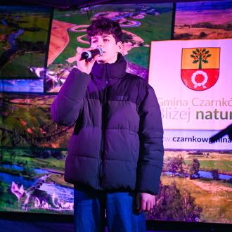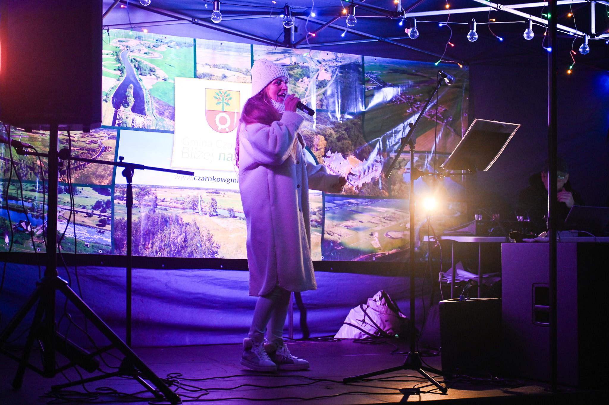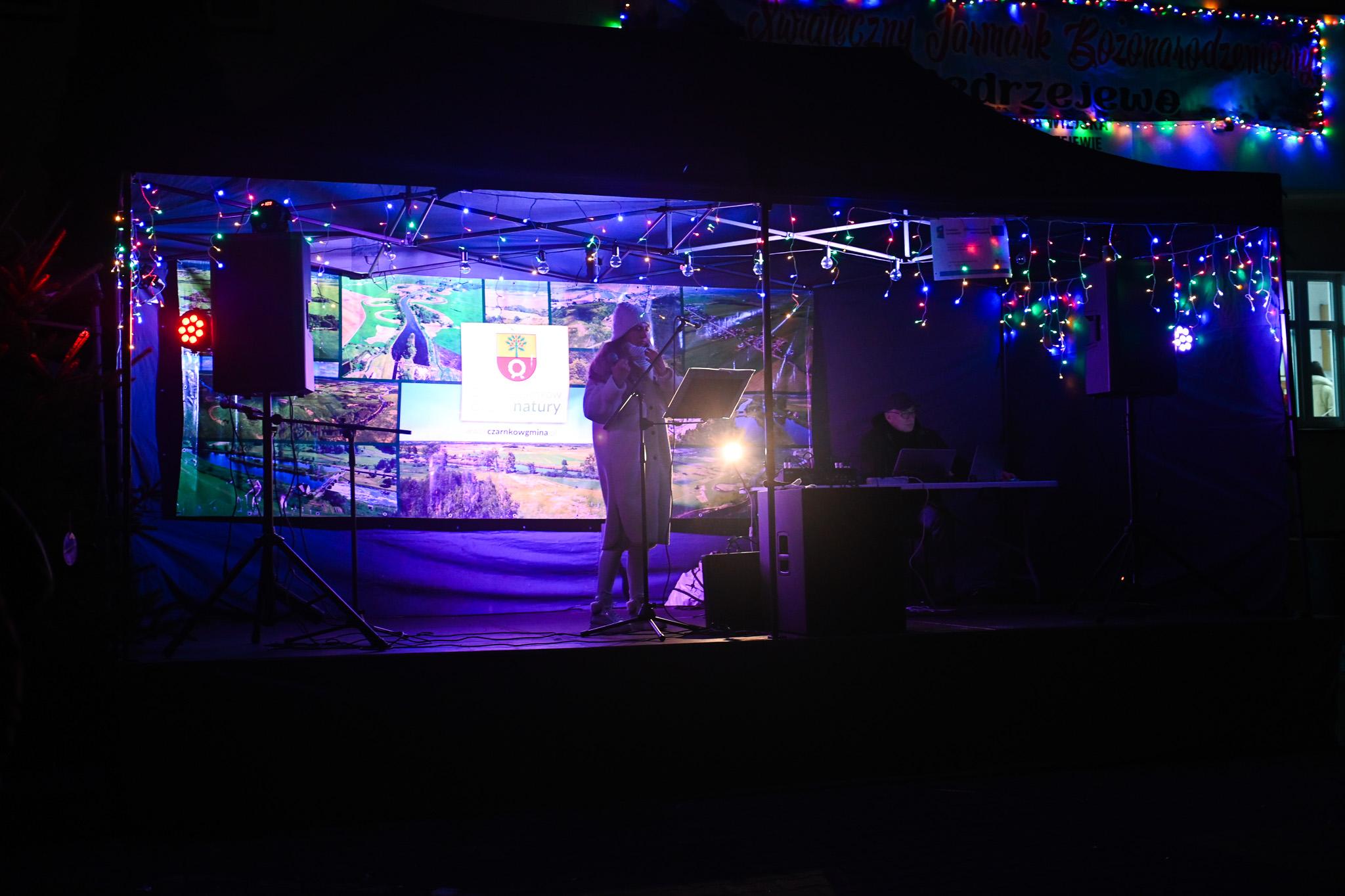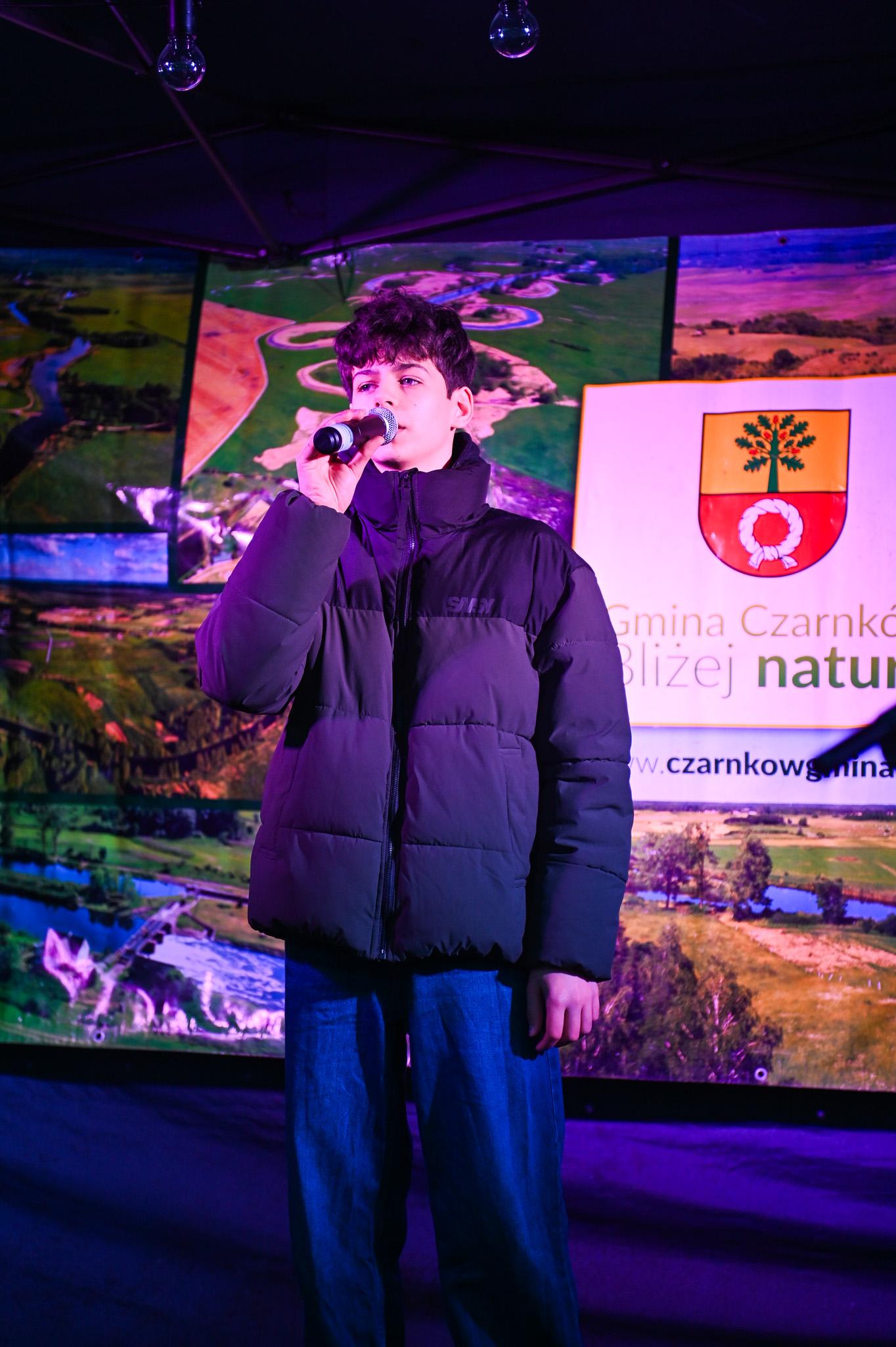 Ogromną część jarmarku wypełniły występy artystyczne, a scena przez cały czas tętniła świątecznymi dźwiękami. Jako pierwsze zaprezentowały się dzieci z Publicznego Przedszkola w Jędrzejewie oraz z Punktu Przedszkolnego w Gajewie, wspólnie przenosząc publiczność na „Ulicę Śnieżynkową”. Ich występ, pełen niewinnego uroku, wprowadził wszystkich w kolędowy nastrój. Następnie scena zaczęła wypełniać się kolejnymi młodymi talentami. Publiczność mogła zobaczyć niezwykle nastrojowy i pełen ekspresji taniec do utworu „Carol of the Bells w wykonaniu Nadii Woniakowskiej i Julii Ryżek. Dziewczęta poruszały się z lekkością i precyzją, tworząc choreografię, która idealnie oddawała dynamikę świątecznego utworu. Zaraz potem Lena Wieczorek zaśpiewała poruszające „Mario, czy już wiesz?”, a Hania Korzeniewska swoją radosną piosenką „Pachnie świętami” wywołała pierwsze wesołe podśpiewywania wśród słuchaczy. Agata Mąka zaprezentowała „Pierwszą Gwiazdę”, wprowadzając wszystkich w nostalgiczny nastrój, po czym Marysia Rajek wykonała delikatne „Zaśnij, Dziecino, Boże Dziecię”. Na scenie pojawiała się kolejno Martyna Leśniewska przepięknie i wzruszająco śpiewająca „Cicho, cicho Pastuszkowie”, pełna energii Tola Just z utworem „Pastorałka od serca do ucha” oraz Jagna Just, która zaśpiewała „Kochany Panie Mikołaju”, wzbudzając ogromną sympatię publiczności. Nie zabrakło także bardziej współczesnych brzmień Martyny Izatowicz , która zaśpiewała „Święta w nas”, a Zosia Spicker w przejmujący sposób zaprezentowała „Skrzypi wóz”. Tuż po niej na scenie pojawił się Szymon Spicker, który z radosną lekkością i dziecięcą szczerością wykonał pastorałkę „Pastuszek bosy”, poruszając publiczność swoją naturalnością i ciepłem. Gabrysia Zięba pięknie i niezwykle nastrojowo zaśpiewała „Noel”, wprowadzając publiczność w klimat świątecznej ciszy i wzruszenia, a zaraz po niej Laura Rzysko zachwyciła dostojnym wykonaniem „Mędrcy świata, Monarchowie”, które wybrzmiało na scenie z prawdziwą elegancją. Duże wrażenie na publiczności zrobił także występ Hani Bednarek, która zaśpiewała „Skrzypi wóz”, oraz wyjątkowy „Boży Blues” w interpretacji Zuzanny Mąki. Chwilę później scena na moment zamieniła się w plan filmowy dzięki wykonaniu „Have Yourself A Merry Little Christmas” przez Michała Rajka. Emocje podtrzymała Lena Topór, prezentując zarówno wzruszającą „Dziewczynkę z zapałkami”, jak i późniejszą, radosną piosenkę „Na święta”. Magda Kościuk zakończyła tę część występów subtelnym „Święta w nas”, którego ciepłe, liryczne tony otuliły publiczność niczym miękki, zimowy płaszcz, wprowadzając wszystkich w pełen zadumy i wzruszeń świat świątecznej magii. Uczniowie ze Szkoły Podstawowej w Kuźnicy Czarnkowskiej oczarowali publiczność, prezentując pełne wdzięku „Kłopoty ze śniegiem” oraz magiczny utwór „Pada śnieg”, który przeniósł wszystkich w prawdziwie zimowy, świąteczny nastrój. Niezwykle ciepło przyjęto także występy uczniów Szkoły Podstawowej w Jędrzejewie.