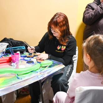 Wolontariusze z Centrum Wolontariatu „Pomagamy Razem” przy CUS w Gminie Czarnków dodali najmłodszym mnóstwo radości, oferując malowanie twarzy, które przemieniało dzieci w kolorowe postacie, bajkowe zwierzątka i ukochanych bohaterów. Pod namiotem Gminy Czarnków odbywały się warsztaty bożonarodzeniowe, podczas których uczestnicy tworzyli własne, niepowtarzalne świąteczne ozdoby. Natomiast Biblioteka Publiczna Gminy Czarnków zachwycała stoiskami pełnymi ręcznie wykonanych ozdób i świątecznych obrazów, przyciągając wzrok dzieci i dorosłych. Całe wydarzenie poprowadzili Agnieszka Wiśniewska i Daniel Gołębiewski, którzy zapowiadali kolejne atrakcje i wprowadzali uczestników w świąteczny nastrój.