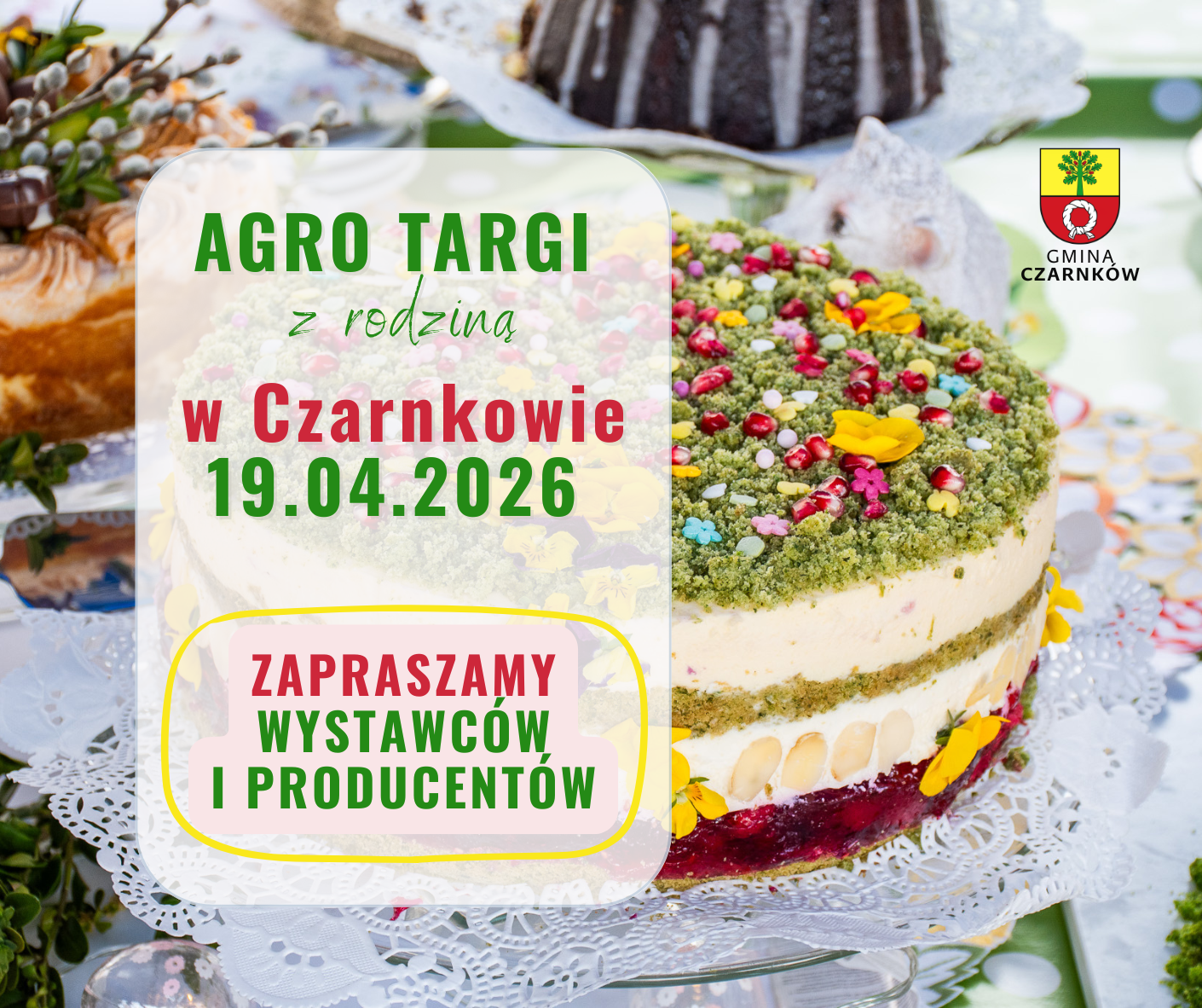 Organizatorzy XVI edycji „AgroTargów z Rodziną”, które odbędą się w niedzielę 19 kwietnia 2026 r. w Czarnkowie serdecznie zapraszają wszystkich zainteresowanych wystawców i producentów do rezerwacji powierzchni wystawienniczej. W załączeniu karta zgłoszeniowa i aktualnie obowiązujący cennik. Druki te można także pobrać ze stron internetowych Powiatu Czarnkowsko - Trzcianeckiego, Miasta Czarnków, Gminy Czarnków oraz Miejskiego Centrum Kultury w Czarnkowie: