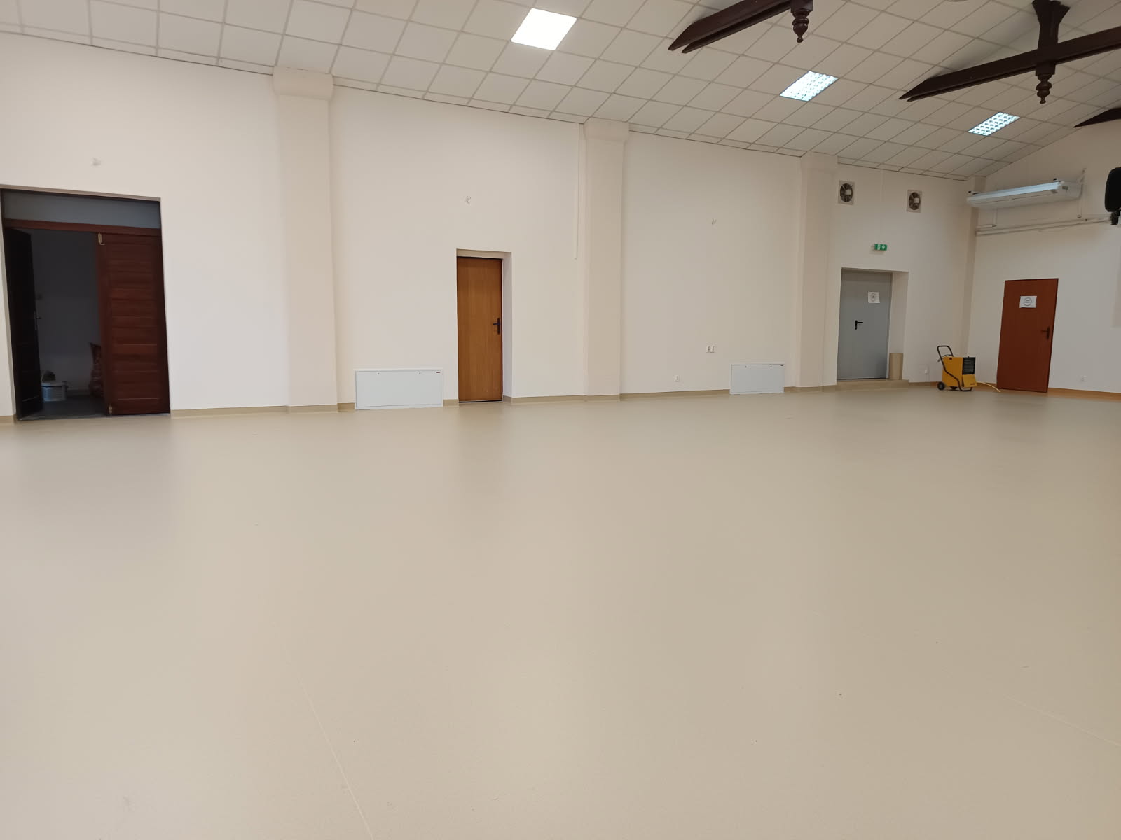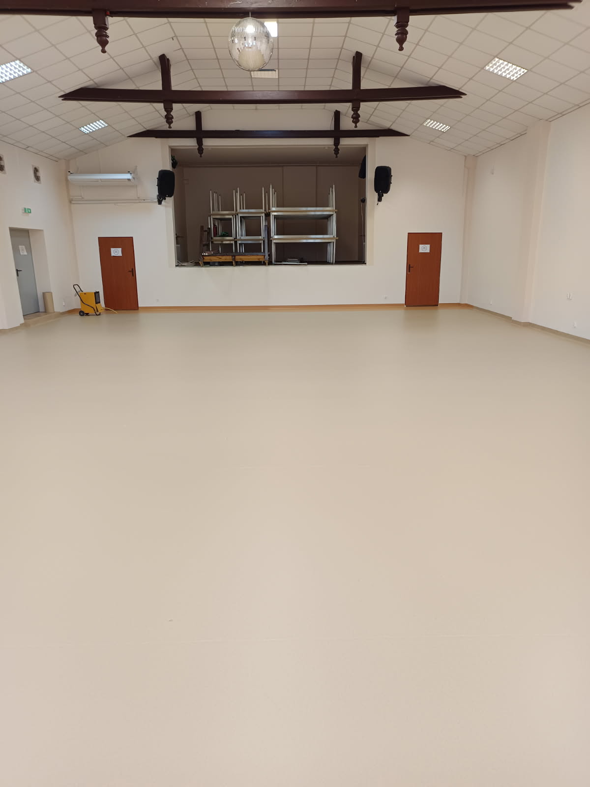 W ramach prac remontowych: ✔ wykonano nową, trwałą podłogę 🪵 ✔ odmalowano ściany w sali wiejskiej 🖌️