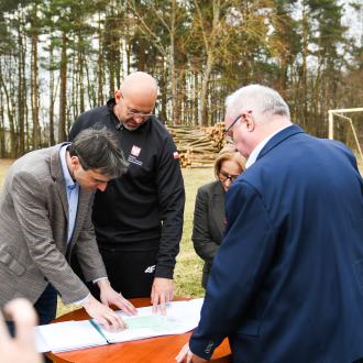 Wójt Krzysztof Chyży zaprezentował ministrowi szczegółowy projekt budowlany nowoczesnego kompleksu. Planowana inwestycja obejmuje: