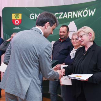W trakcie uroczystości Pani Aleksandra Glapińska (była sołtys sołectwa Średnica, która swoją funkcję pełniła do 15.02.2026 r.) otrzymała od Wójta specjalne podziękowania za dwie dekady oddanej pracy na rzecz swojej społeczności.