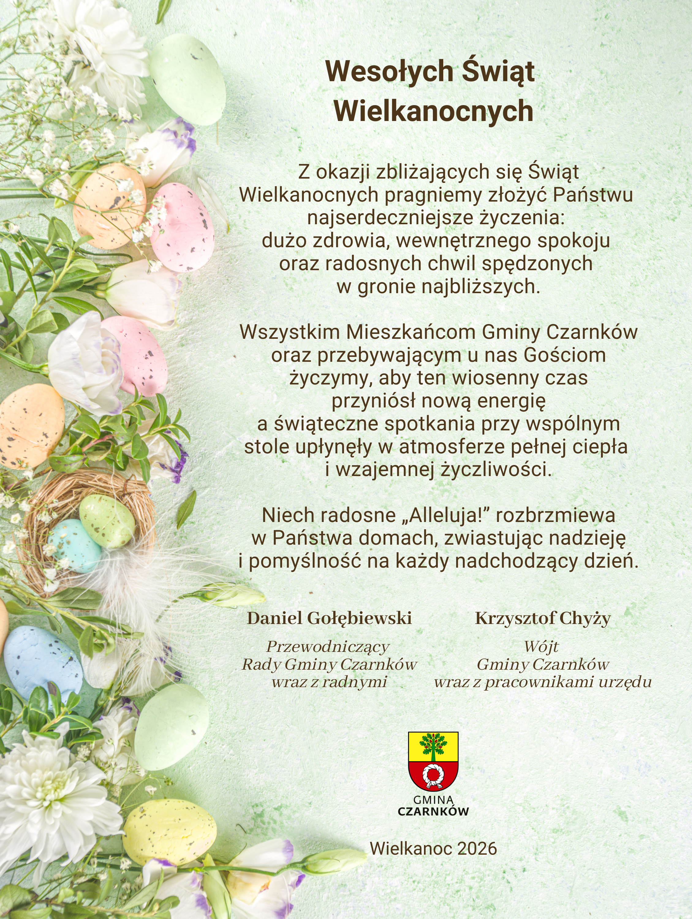Wójt oraz Przewodniczący Rady Gminy Czarnków kierują do Państwa kilka serdecznych słów.