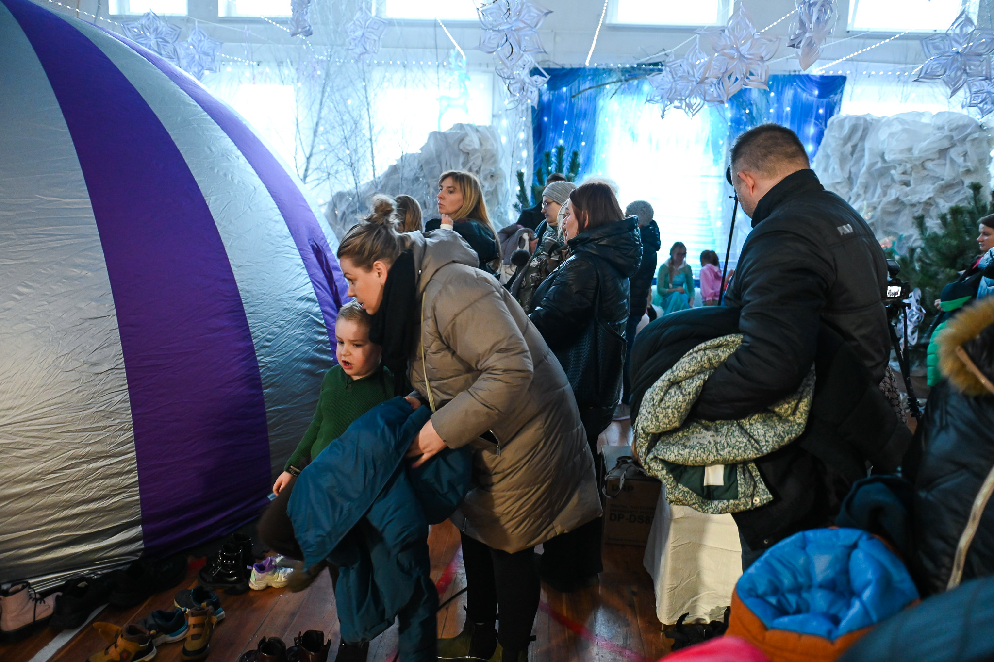 Gdy dzieci zaczęły wspólnymi okrzykami wzywać Świętego Mikołaja, w powietrzu poczuć można było prawdziwy dreszczyk emocji. I nagle pojawił się on, nie w klasycznych saniach, lecz w ich „prawie-saniowej” wersji, przystrojonej świątecznie. Mikołaj zatrzymał się, uśmiechnął, pomachał, po czym dołączył do zabawy, wywołując jeszcze większy entuzjazm. Przyniósł ze sobą wyjątkowy prezent. Na sali wiejskiej dzieci mogły odkrywać kinową strefę sferyczną, szaleć na zamkach dmuchanych oraz robić pamiątkowe zdjęcia w klimacie „Krainy Lodu”, gdzie Elsa i Anna wprowadzały wszystkich w bajkowy, zimowy świat. Radość i zachwyt malowały się na twarzach najmłodszych, którzy z wypiekami oczekiwali kolejnych atrakcji. Zanim Mikołaj przyjechał, dzieci musiały odpowiedzieć na jego pytania, co tylko podgrzało atmosferę. Na początku natomiast taniec w rytmie opowieści o Grinchach rozgrzał wszystkich uczestników, wprowadzając dzieci w pełen śmiechu i zabawy świąteczny nastrój. A potem wspólnie zatańczyli z Mikołajem, śmiejąc się i ciesząc każdą chwilą spotkania ze świętym gościem. Ci, którzy postanowili pozostać na placu po głównych atrakcjach, wzięli udział w kreatywnej zabawie ,,Wspólnie ozdabiali choinki". Publiczność decydowała, która choinka zasługuje na tytuł najpiękniejszej. Po radosnym głosowaniu okazało się, że… nikt nie wygrał, bo wszystkie choinki były równie piękne!