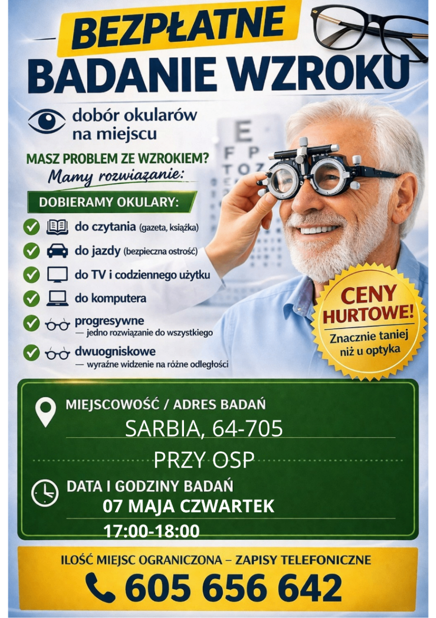 Bezpłatne badanie wzroku w Sarbi