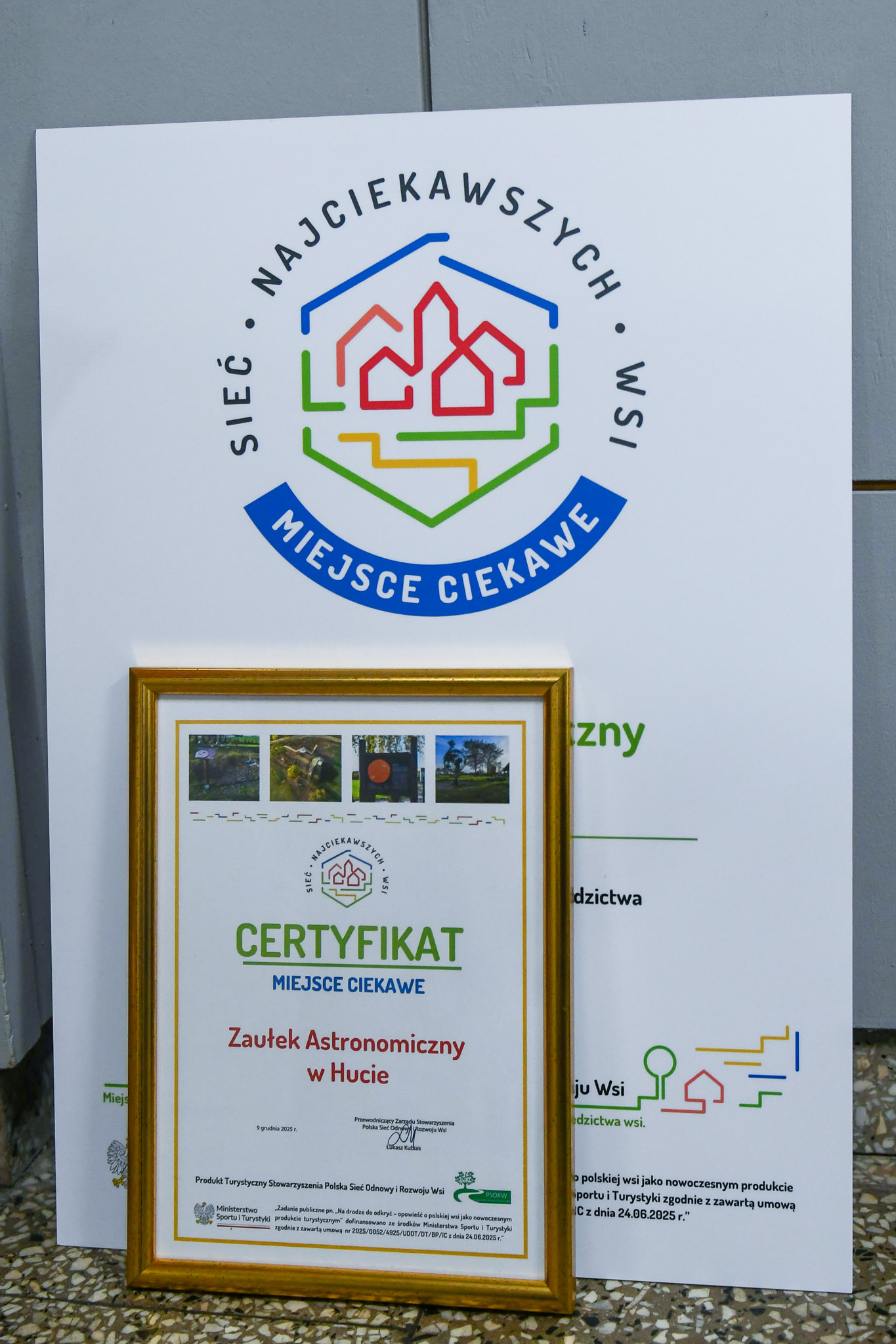 Polska Sieć Odnowy i Rozwoju Wsi (PSORW) oficjalnie potwierdziła: "Tu zaczyna się niebo. Zaułek Astronomiczny w Hucie" został wyróżniony prestiżowym certyfikatem "Miejsca Ciekawego".