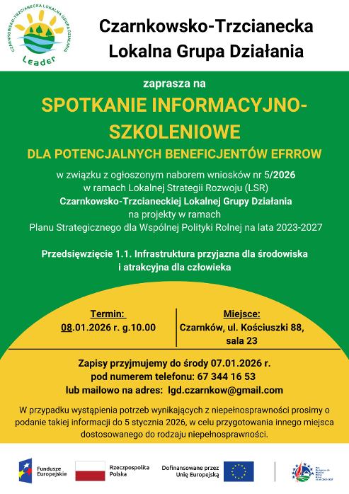 Spotkanie informacyjne dotyczące naboru odbędzie się 8.01.2026 r. o godz. 10:00 (ul. Kościuszki 88, 64-700 Czarnków, sala nr 23)
