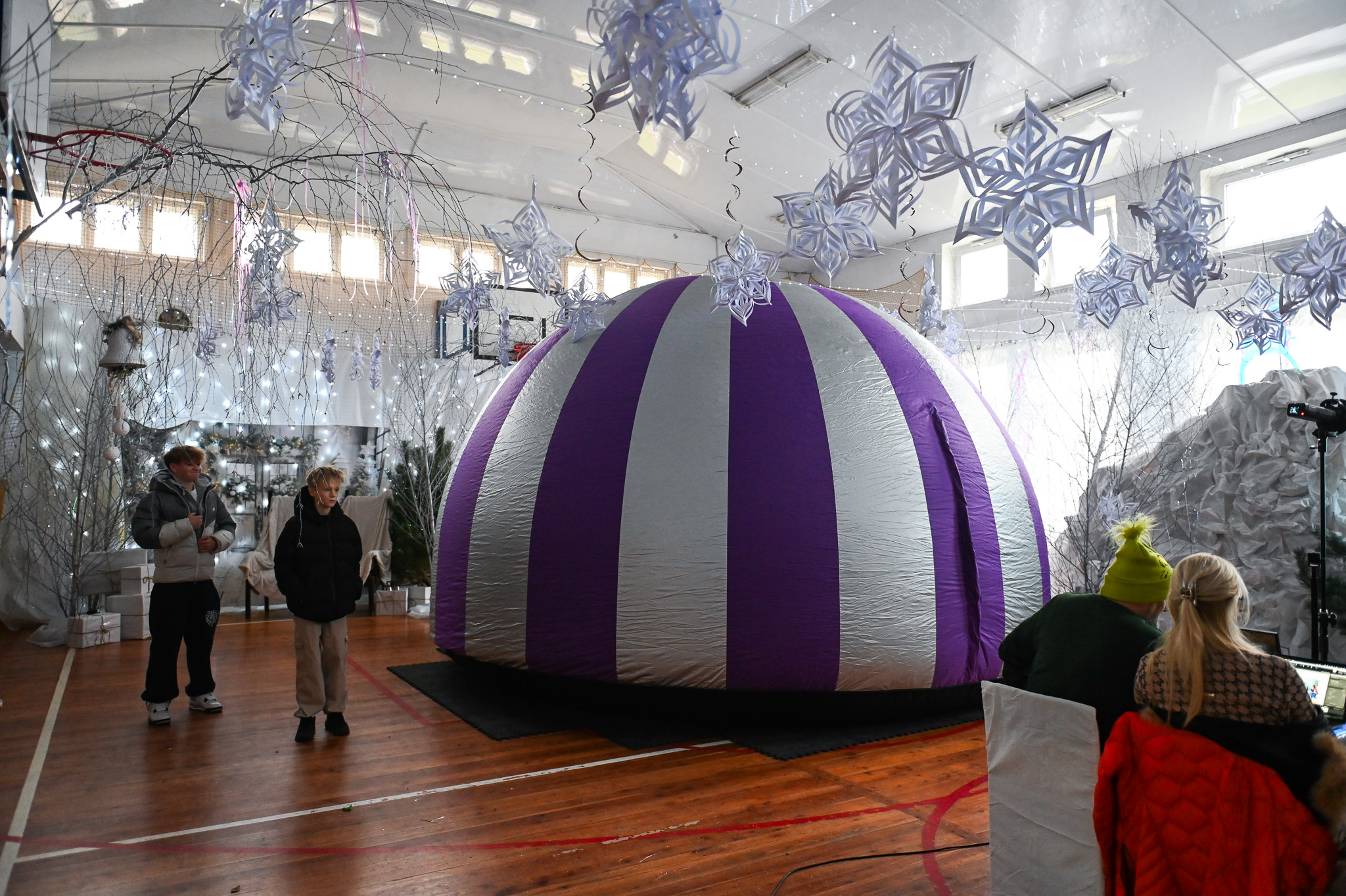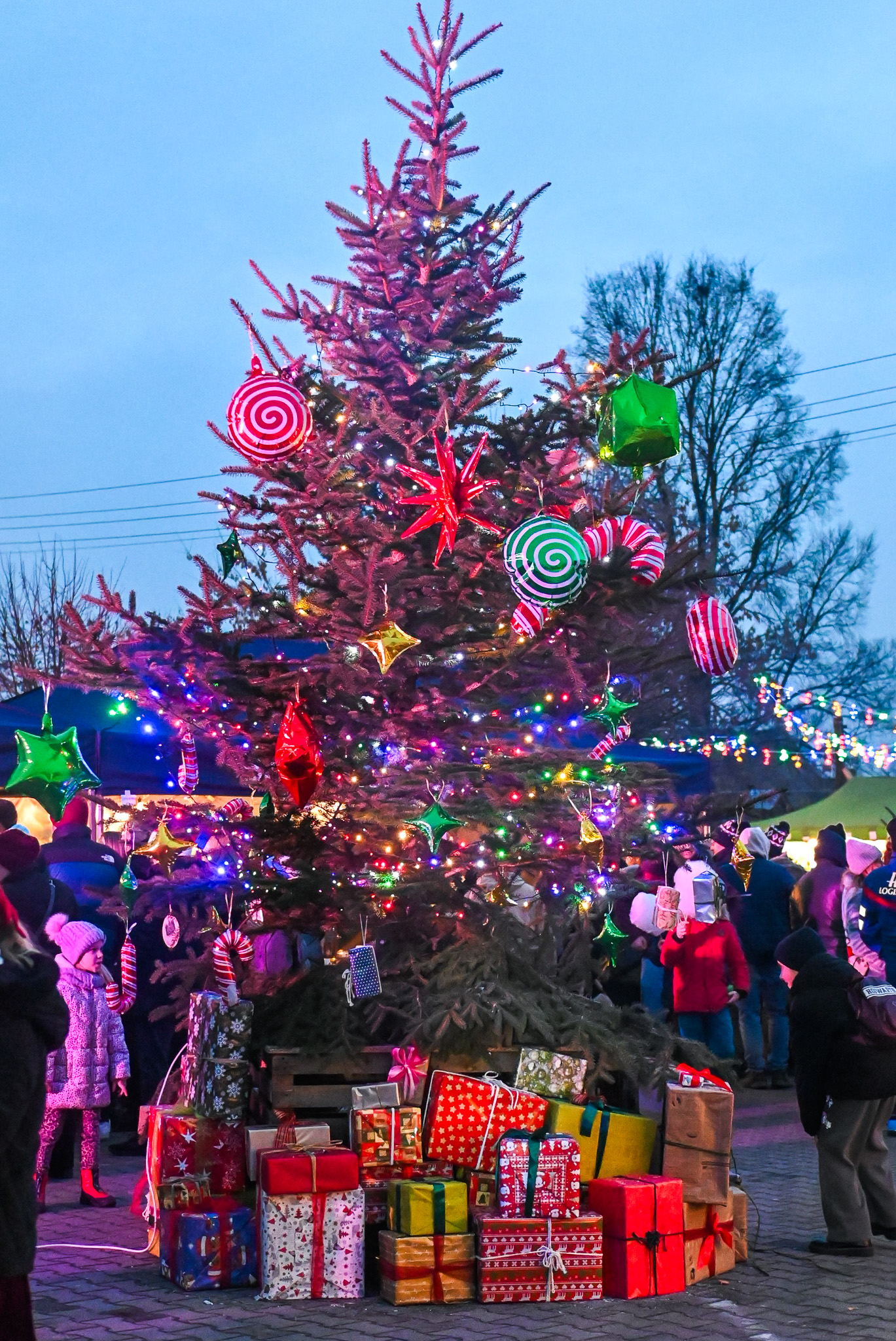 Gdy dzieci zaczęły wspólnymi okrzykami wzywać Świętego Mikołaja, w powietrzu poczuć można było prawdziwy dreszczyk emocji. I nagle pojawił się on, nie w klasycznych saniach, lecz w ich „prawie-saniowej” wersji, przystrojonej świątecznie. Mikołaj zatrzymał się, uśmiechnął, pomachał, po czym dołączył do zabawy, wywołując jeszcze większy entuzjazm. Przyniósł ze sobą wyjątkowy prezent. Na sali wiejskiej dzieci mogły odkrywać kinową strefę sferyczną, szaleć na zamkach dmuchanych oraz robić pamiątkowe zdjęcia w klimacie „Krainy Lodu”, gdzie Elsa i Anna wprowadzały wszystkich w bajkowy, zimowy świat. Radość i zachwyt malowały się na twarzach najmłodszych, którzy z wypiekami oczekiwali kolejnych atrakcji. Zanim Mikołaj przyjechał, dzieci musiały odpowiedzieć na jego pytania, co tylko podgrzało atmosferę. Na początku natomiast taniec w rytmie opowieści o Grinchach rozgrzał wszystkich uczestników, wprowadzając dzieci w pełen śmiechu i zabawy świąteczny nastrój. A potem wspólnie zatańczyli z Mikołajem, śmiejąc się i ciesząc każdą chwilą spotkania ze świętym gościem. Ci, którzy postanowili pozostać na placu po głównych atrakcjach, wzięli udział w kreatywnej zabawie ,,Wspólnie ozdabiali choinki". Publiczność decydowała, która choinka zasługuje na tytuł najpiękniejszej. Po radosnym głosowaniu okazało się, że… nikt nie wygrał, bo wszystkie choinki były równie piękne!