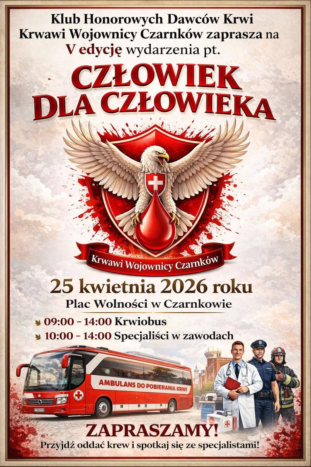 W sobotę, 25 kwietnia, na Placu Wolności w Czarnkowie odbędzie się V edycja wydarzenia organizowanego przez Klub HDK Krwawi Wojownicy Czarnków. Jako Gmina Czarnków wspieramy tę inicjatywę i zachęcamy do udziału. Oddawanie krwi to szlachetny gest, który ratuje życie, a każda kropla przekazana przez darczyńców ma ogromną wartość dla osób potrzebujących wsparcia.
