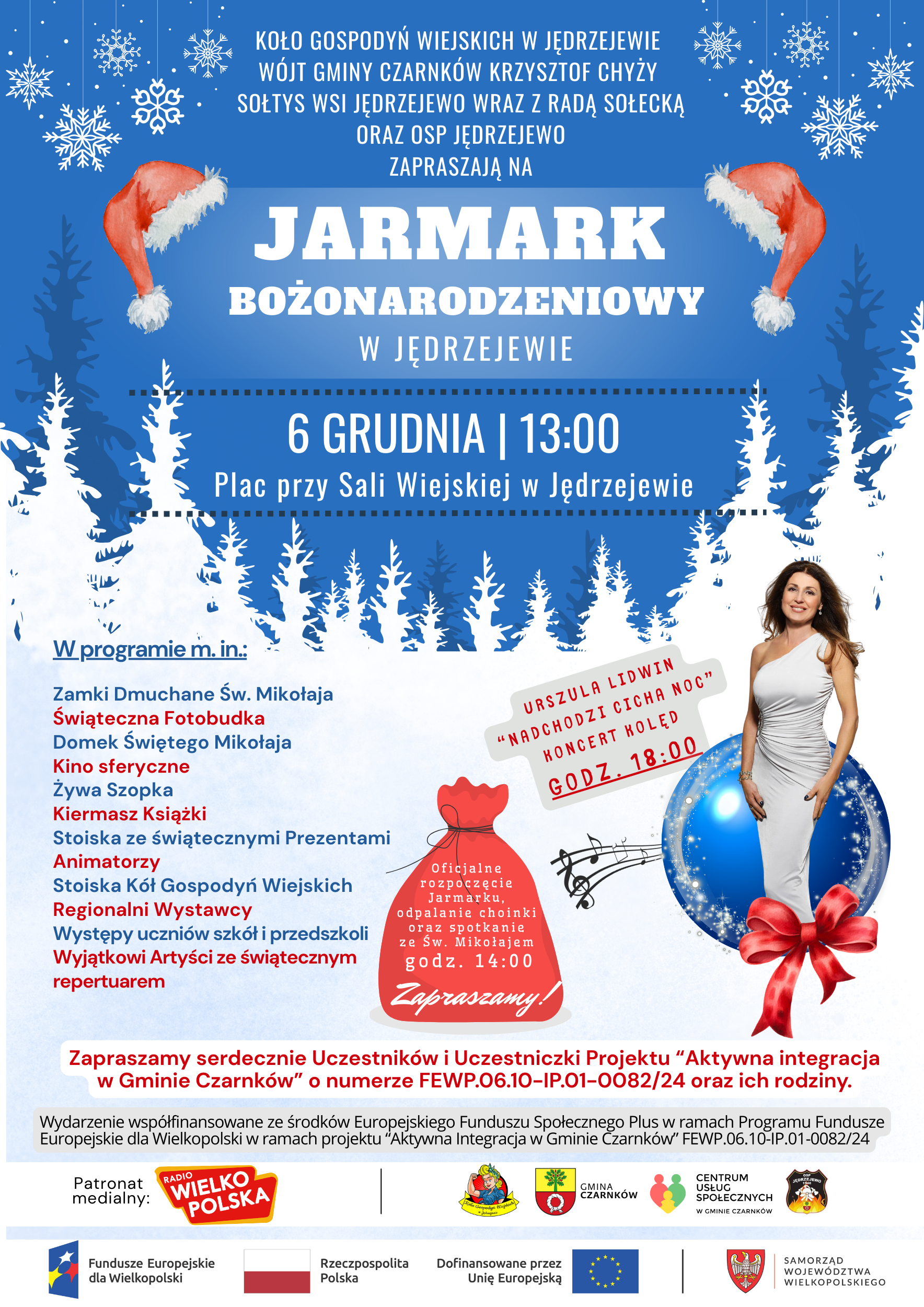 Koło Gospodyń Wiejskich w Jędrzejewie, Wójt Gminy Czarnków Krzysztof Chyży, Sołtys wsi Jędrzejewo wraz z Radą Sołecką oraz OSP Jędrzejewo zapraszają mieszkańców Gminy Czarnków oraz gości na Jarmark Bożonarodzeniowy w Jędrzejewie – wydarzenie pełne świątecznego klimatu, rodzinnej atmosfery i licznych atrakcji dla dzieci i dorosłych.