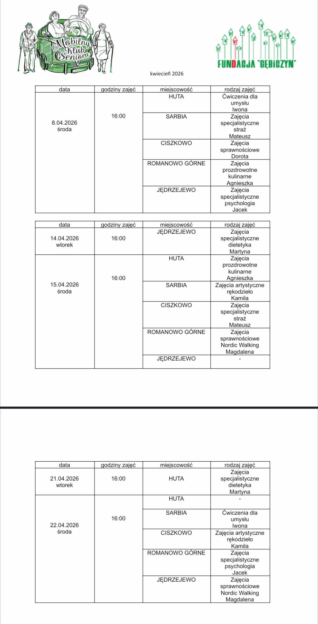 Data wydarzenia 22.04.2026 Czas wydarzenia 16:00 Adres wydarzenia Huta, Sarbia, Ciszkowo, Romanowo Górne, Jędrzejewo Udostępnij: FacebookDrukujPDF Więcej wydarzeń